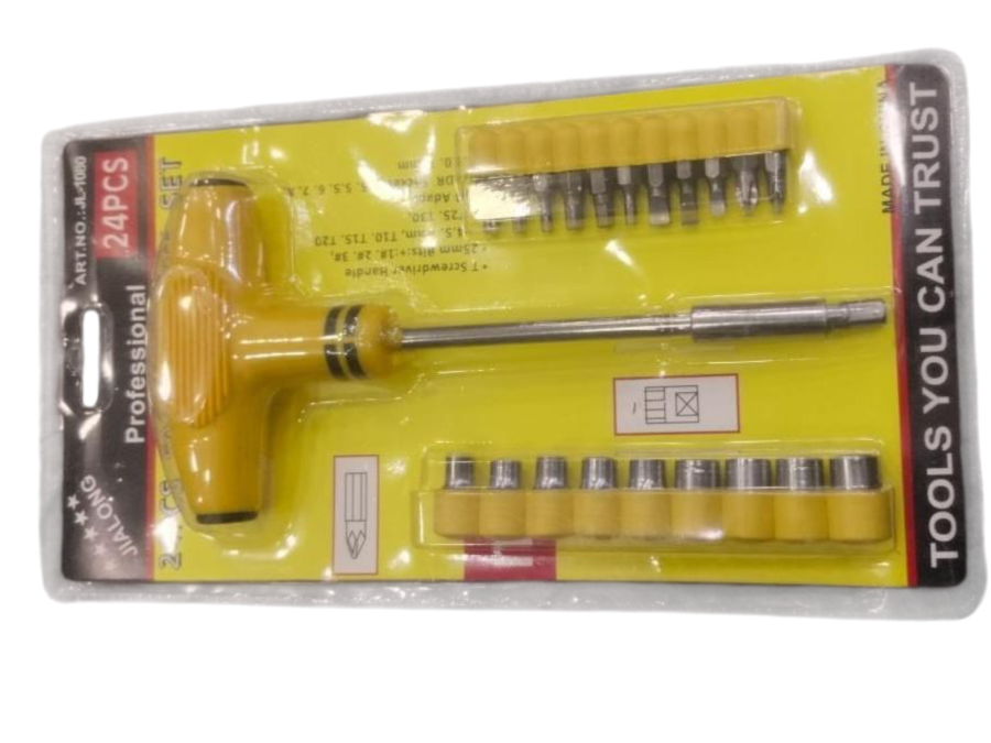 24 Pcs Professional Screwdriver Tool Set with T-Handle | Multi Bit Repair Tool Kit