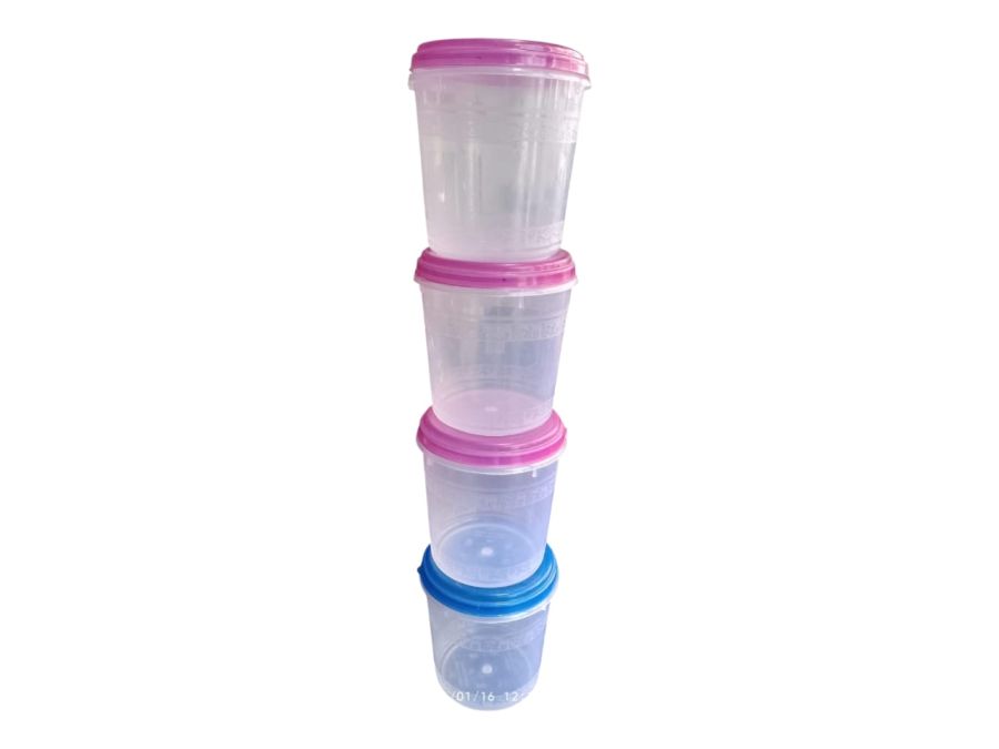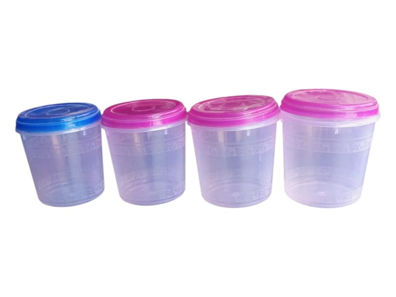 4 पीस एयरटाइट प्लास्टिक स्टोरेज कंटेनर सेट। मसाले, दाल, चीनी और स्नैक्स रखने के लिए परफेक्ट।