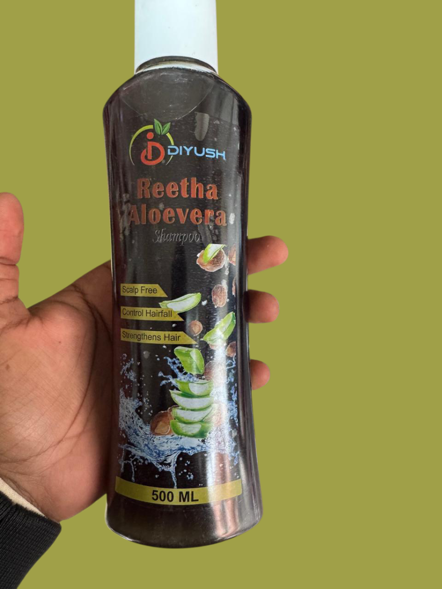 DIYUSH रीठा और एलोवेरा शैम्पू 500ml – स्कैल्प को साफ रखे, हेयर फॉल कंट्रोल करे और बालों को मजबूत बनाए। रोज़ाना उपयोग के लिए उपयुक्त हर्बल फॉर्मूला।