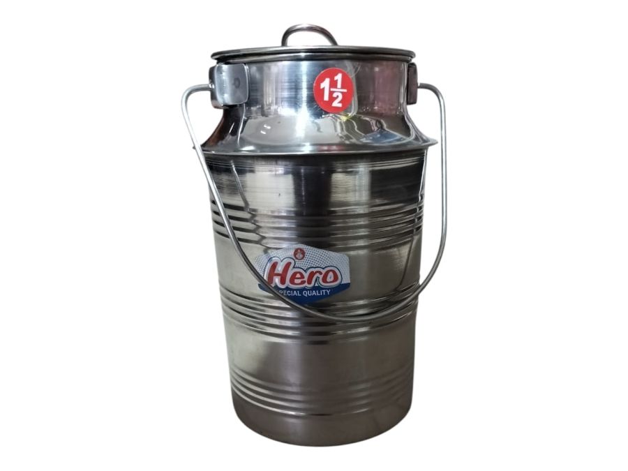 मजबूत स्टेनलेस स्टील 1.5 लीटर मिल्क कैन – ढक्कन और मजबूत हैंडल के साथ, दूध व अन्य तरल पदार्थ रखने के लिए उपयुक्त।