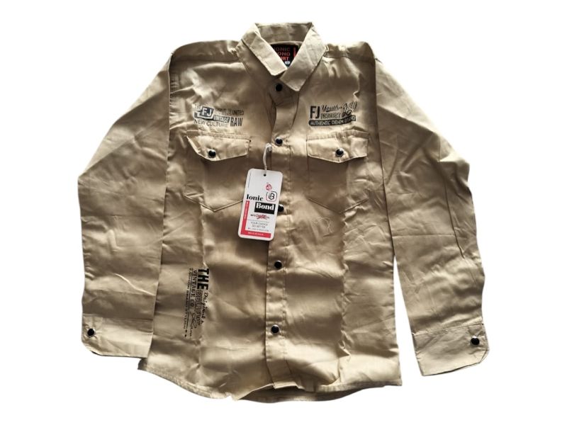 ट्रेंडी प्रिंटेड डिजाइन के साथ स्टाइलिश बेज शर्ट – कैजुअल और डेली वियर के लिए परफेक्ट।