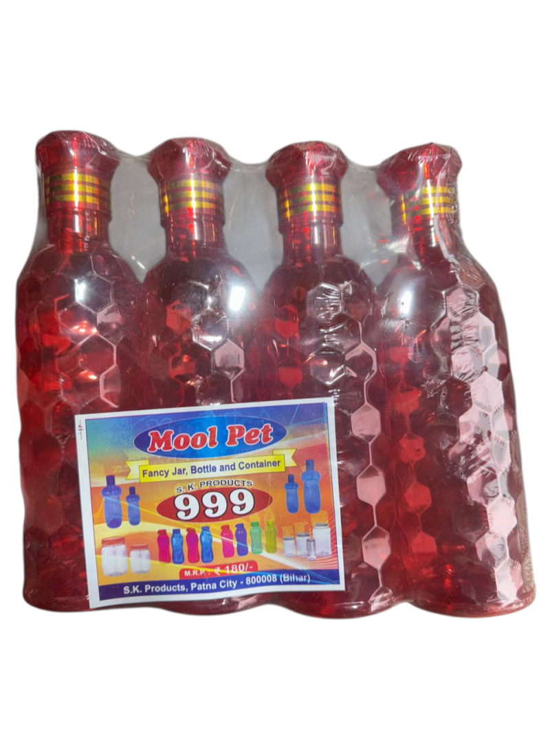 4 पीस फैंसी प्लास्टिक वाटर बॉटल सेट। लीक-प्रूफ डिजाइन और स्टाइलिश लुक के साथ फ्रिज, घर और ऑफिस के लिए परफेक्ट। हल्की, टिकाऊ और रोज़ाना उपयोग के लिए उपयुक्त।