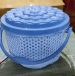 Multipurpose Plastic Storage Basket with Lid & Handle | Round Laundry / Vegetable Storage Box | Durable Home Organizer (Blue)