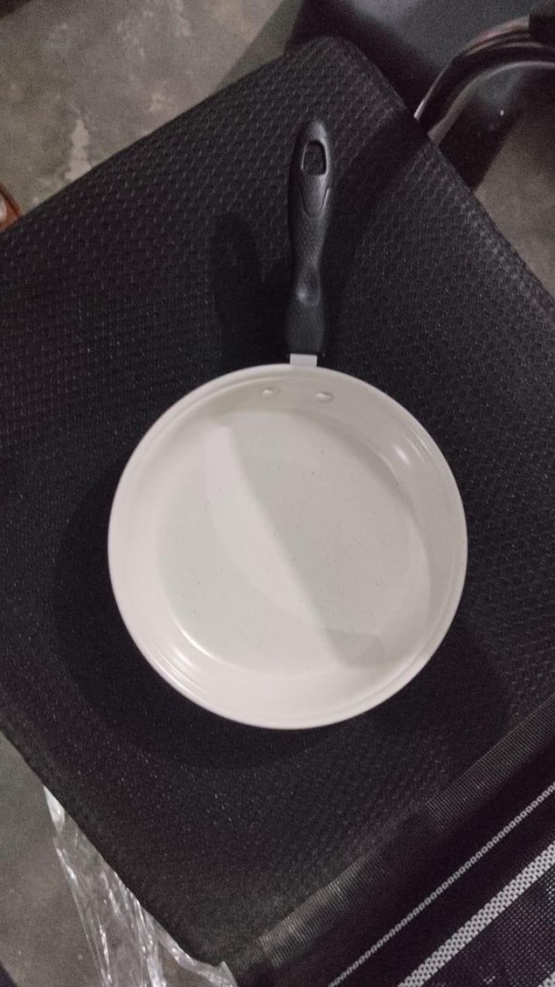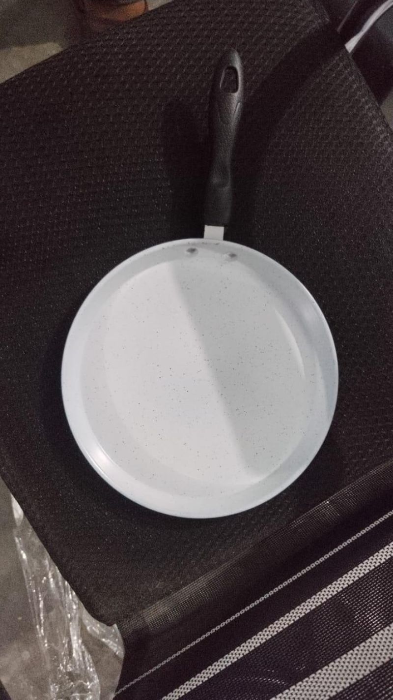 व्हाइट मार्बल कोटेड नॉन-स्टिक फ्राई पैन – कम तेल में खाना बनाने के लिए परफेक्ट। गैस और इंडक्शन दोनों पर इस्तेमाल किया जा सकता है।