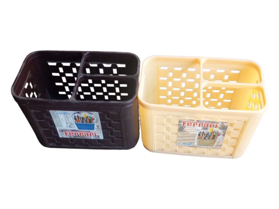 3 कम्पार्टमेंट वाला मल्टीपर्पस प्लास्टिक ऑर्गेनाइज़र। पेन, ब्रश, कटलरी या छोटे सामान रखने के लिए परफेक्ट।