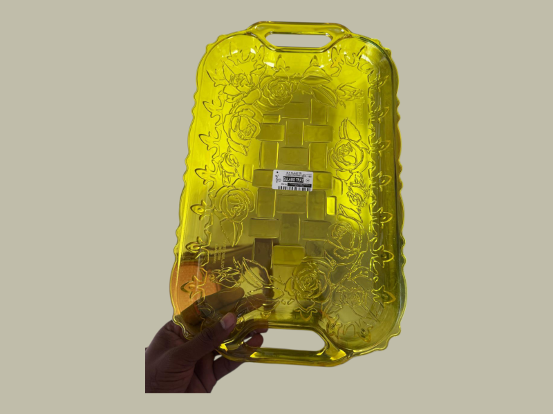 स्टाइलिश फ्लोरल डिज़ाइन प्लास्टिक सर्विंग ट्रे – चाय, नाश्ता और मेहमानों को सर्व करने के लिए मजबूत और हल्की।