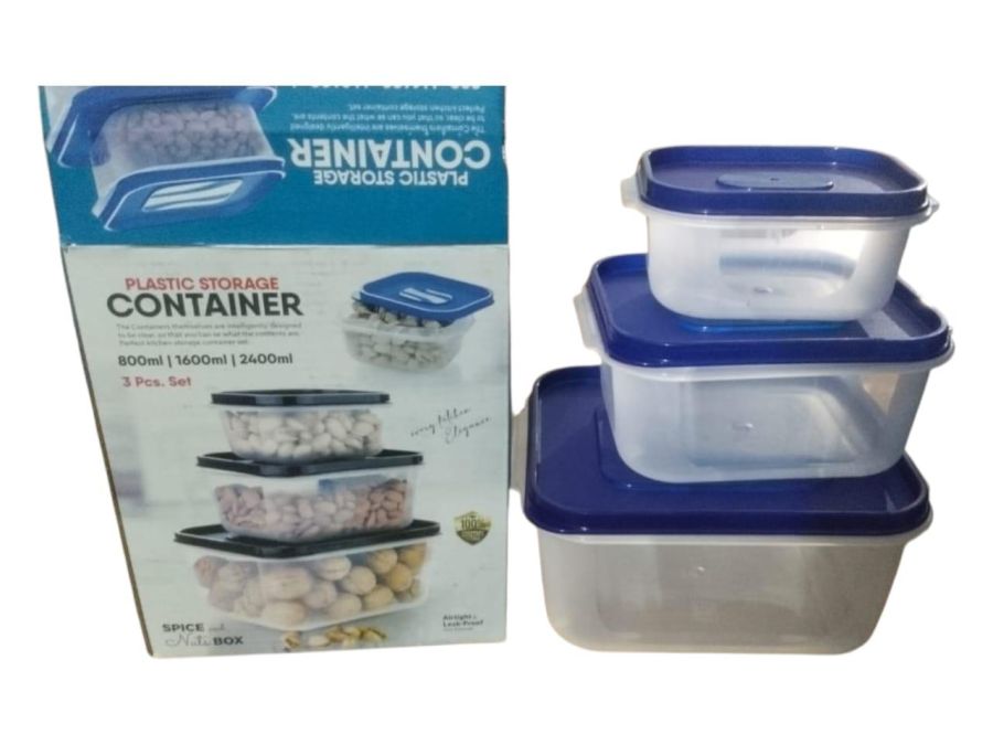 3 पीस प्लास्टिक स्टोरेज कंटेनर सेट – एयरटाइट ढक्कन के साथ, दाल, मसाले, ड्राई फ्रूट और बचे हुए खाने को सुरक्षित रखने के लिए।