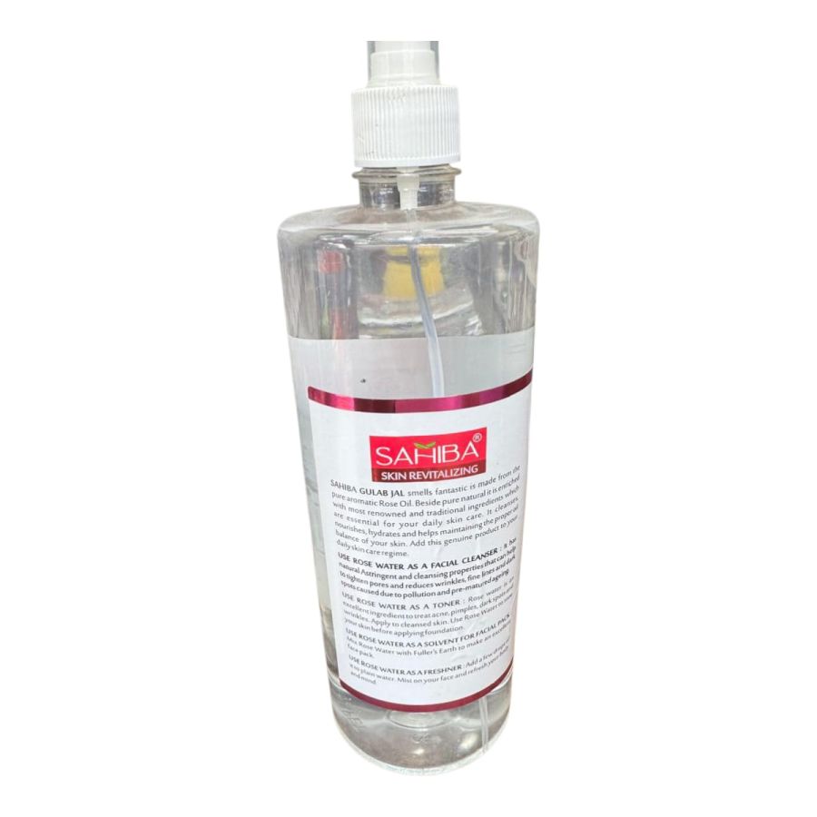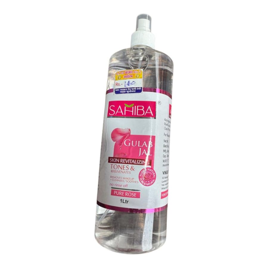 साहिबा गुलाब जल 1 लीटर स्प्रे बोतल – स्किन टोनिंग, क्लीनिंग और रिफ्रेशिंग के लिए शुद्ध रोज़ वाटर। सभी स्किन टाइप के लिए उपयुक्त।
