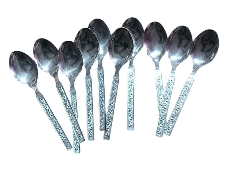 उच्च गुणवत्ता वाले स्टेनलेस स्टील से बना 10 पीस टी स्पून सेट, जो चाय, कॉफी और डेजर्ट के लिए उपयोगी है।