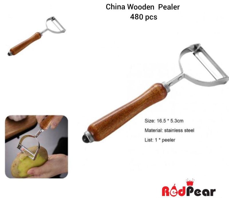 मजबूत स्टेनलेस स्टील ब्लेड और आरामदायक लकड़ी के हैंडल वाला वेजिटेबल पीलर – आलू, गाजर, खीरा और फलों के लिए परफेक्ट।