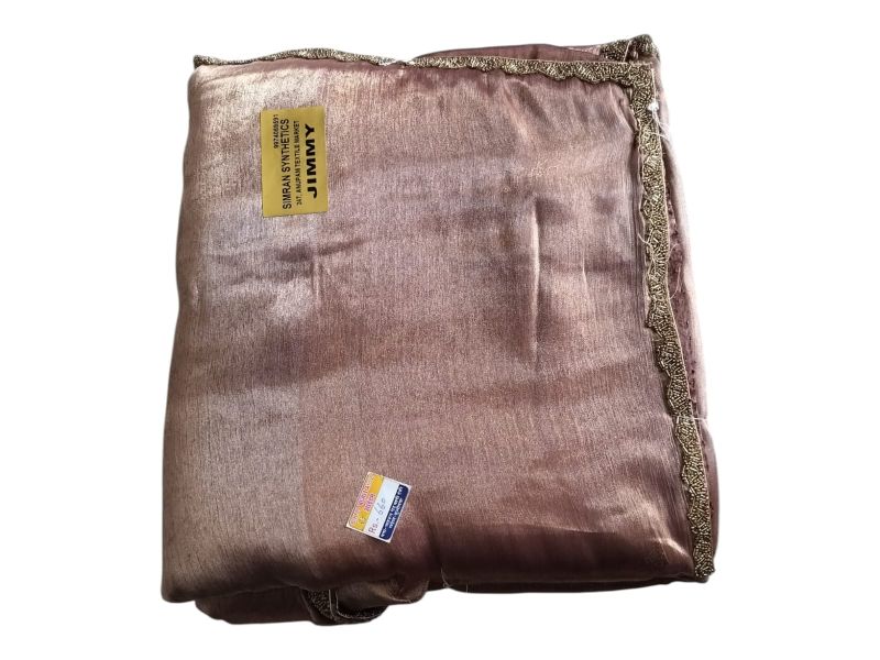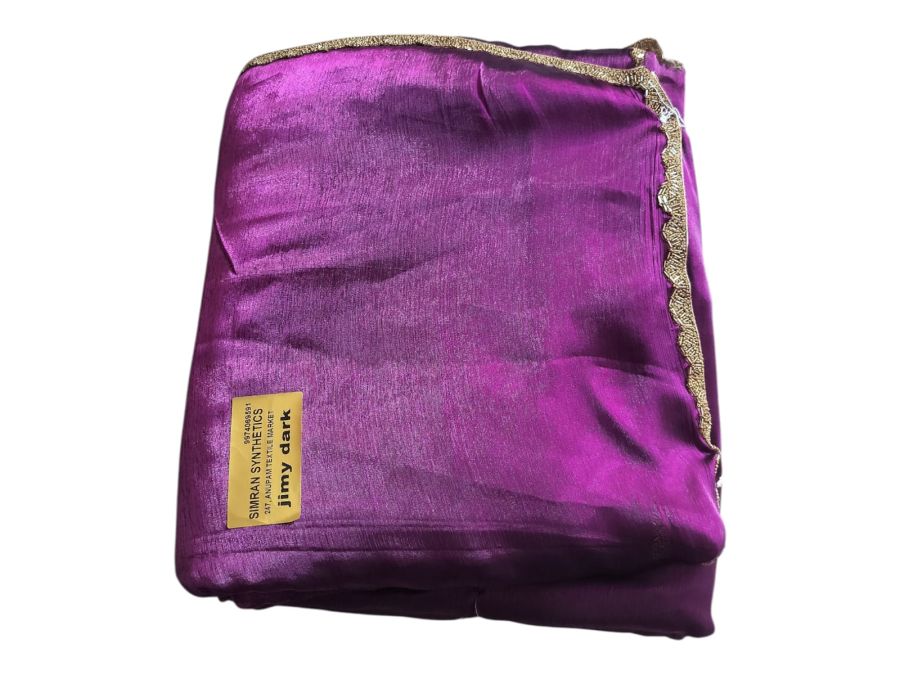 एलिगेंट प्लेन जिमी सिल्क साड़ी गोल्डन लेस बॉर्डर के साथ – शादी, पार्टी और फेस्टिवल के लिए परफेक्ट।