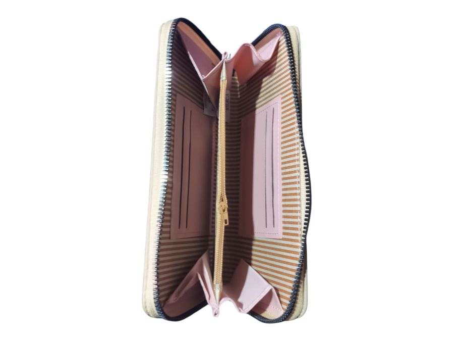 महिलाओं के लिए स्टाइलिश जिप वॉलेट जिसमें कैश, कार्ड और कॉइन रखने के लिए कई कम्पार्टमेंट हैं।