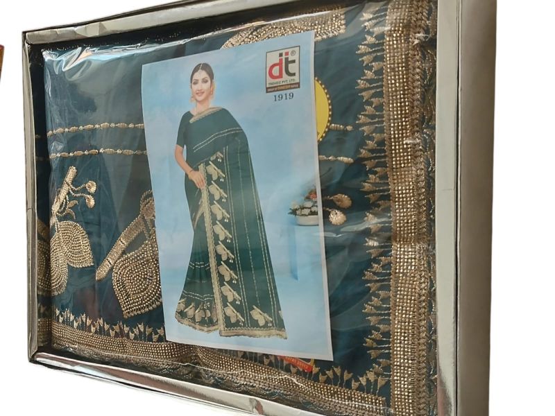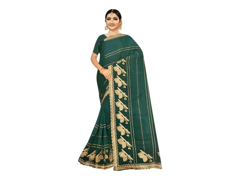 Women’s Dark Green Designer Saree with Golden Border Work – Elegant Party Wear & Festive Saree with Blouse Piece