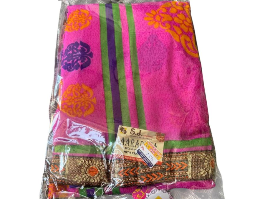 Women’s Pink Printed Saree with Green Stripes & Designer Border – Stylish Casual & Party Wear Saree with Blouse