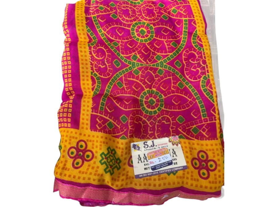 ब्राइट पिंक और येलो कॉम्बिनेशन में ट्रेडिशनल डिजाइन – फेस्टिव और डेली वियर के लिए परफेक्ट साड़ी।