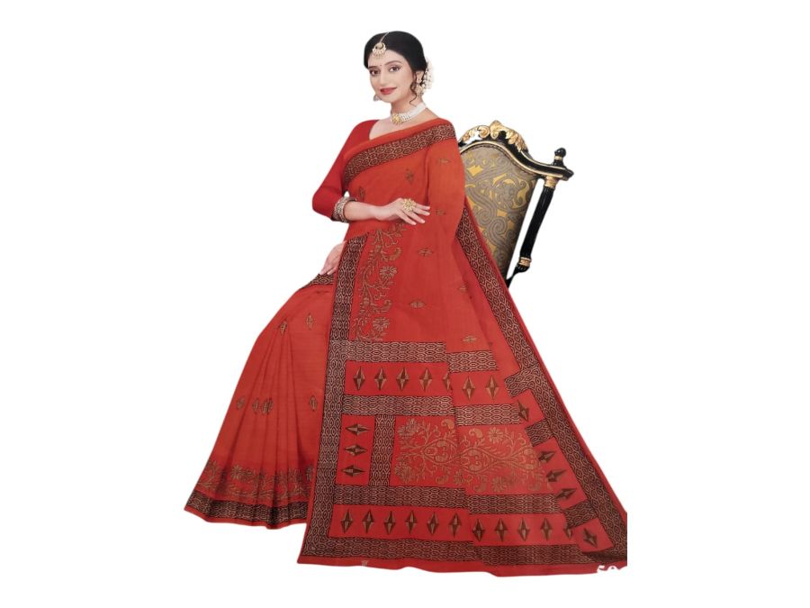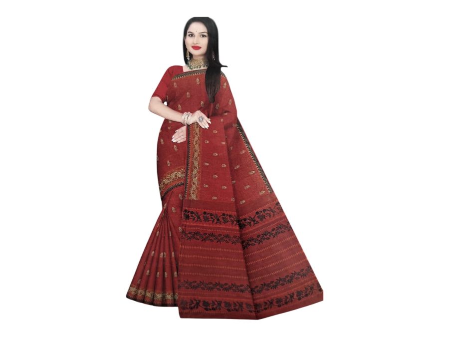 Women’s Printed Traditional Saree (Red) with Blouse Piece | Party Wear Saree)