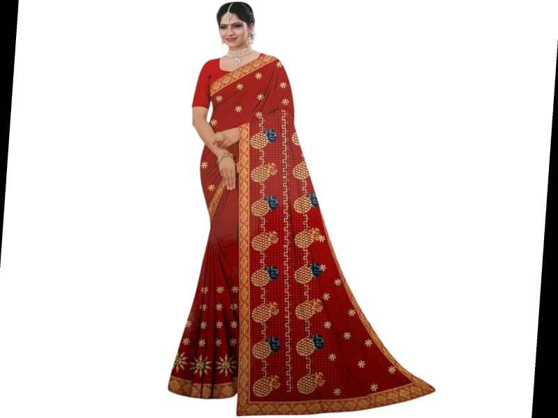 रेड कलर की यूनिक पाइनएप्पल डिजाइन साड़ी जरी बॉर्डर के साथ – शादी और फेस्टिव वियर के लिए परफेक्ट।